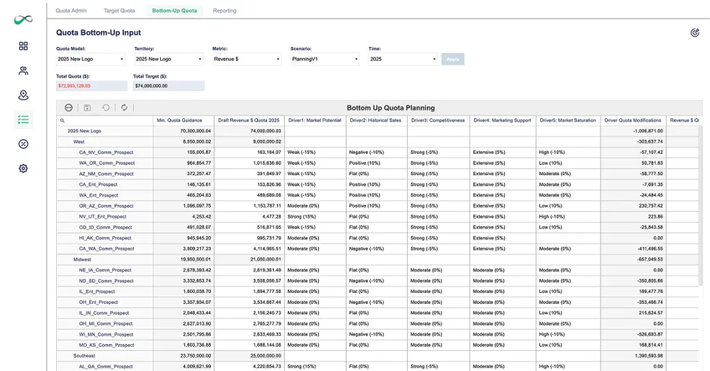 - Adjust quotas dynamically to align with shifting finance targets during the annual operating plan cycle.